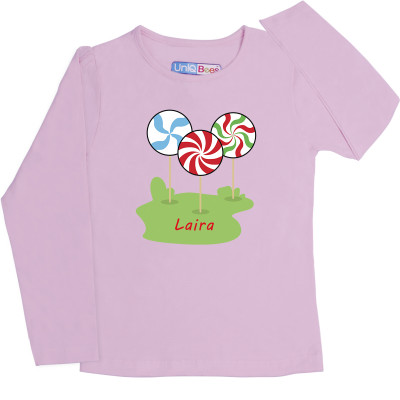 Pink Full Sleeve Girls Pyjama - Candy Stick